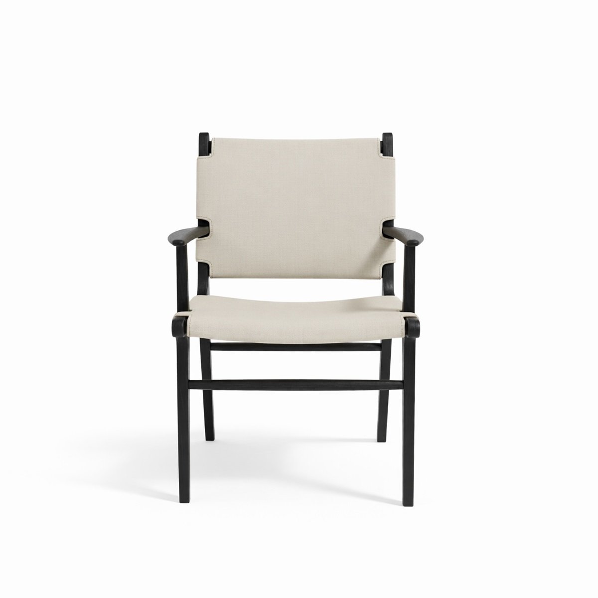 Mẫu ghế ăn theo đuổi tinh thần “architectural minimal”: khung gỗ sồi (Oak) tạo hình gọn, chắc và cân đối, với tay vịn mảnh kéo dài liền mạch giúp tổng thể thanh thoát nhưng vẫn có độ vững.